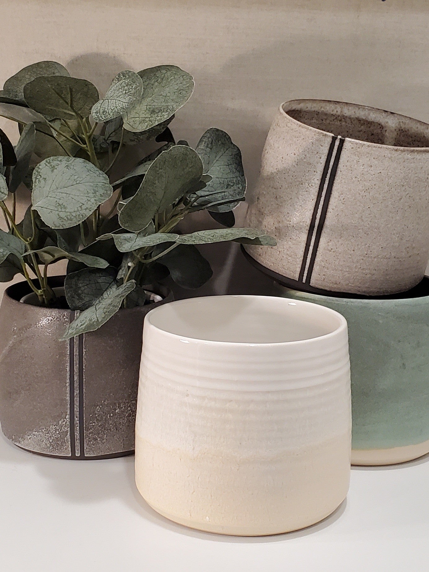 Ceramic, wheel-thrown lidded canisters are made of stoneware clay, and finished with...