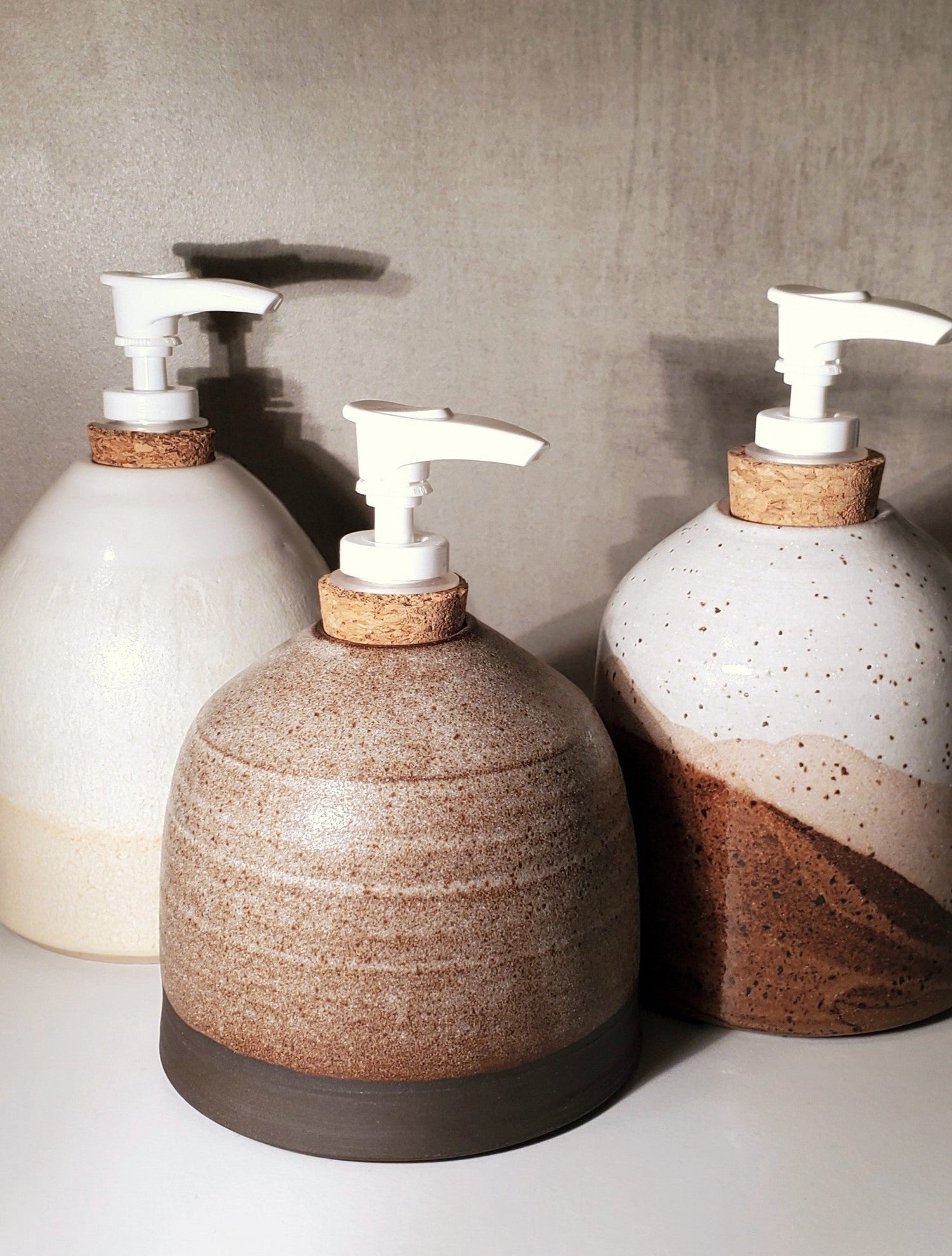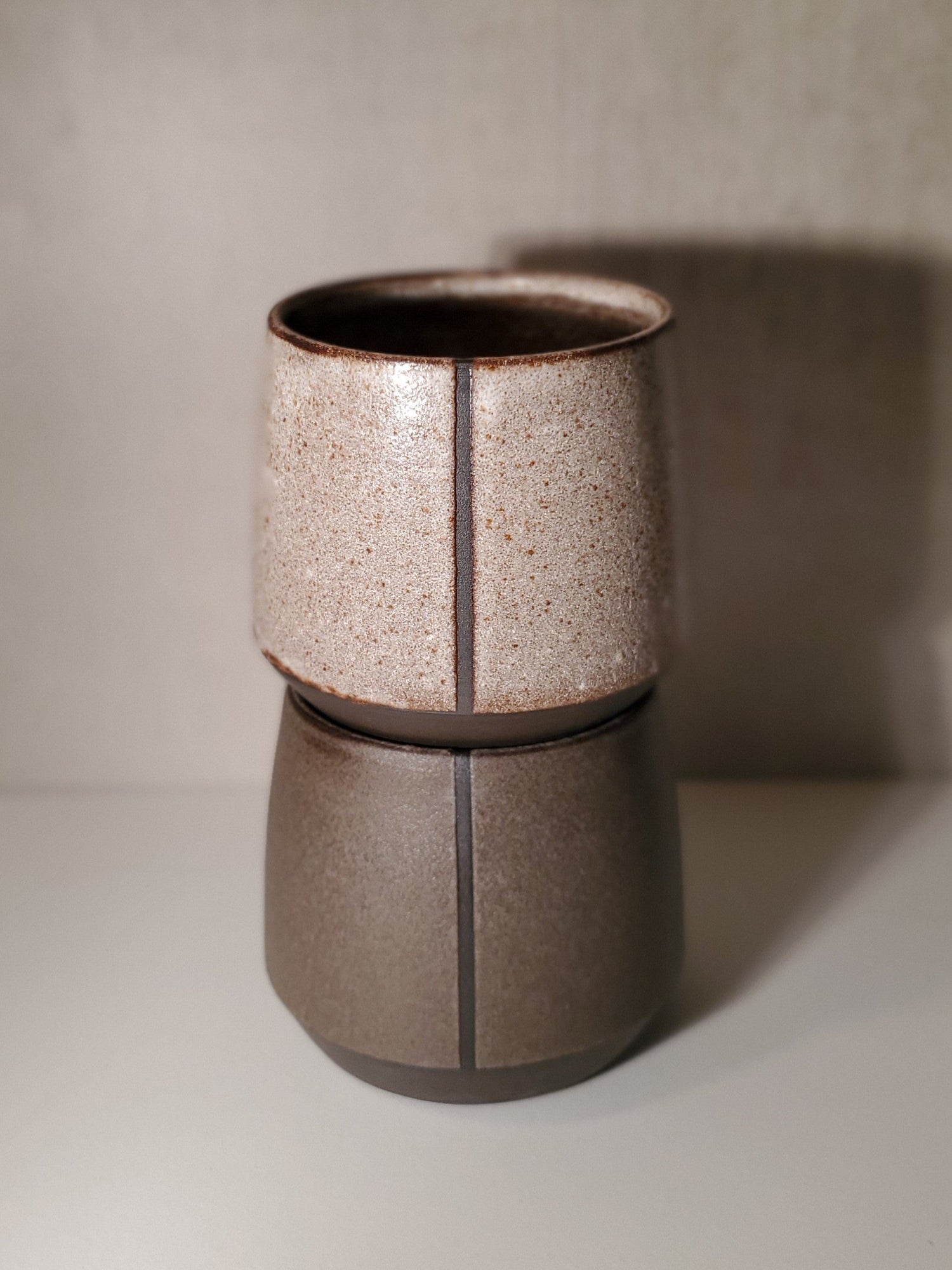 Ceramic, wheel-thrown lidded canisters are made of stoneware clay, and finished with...