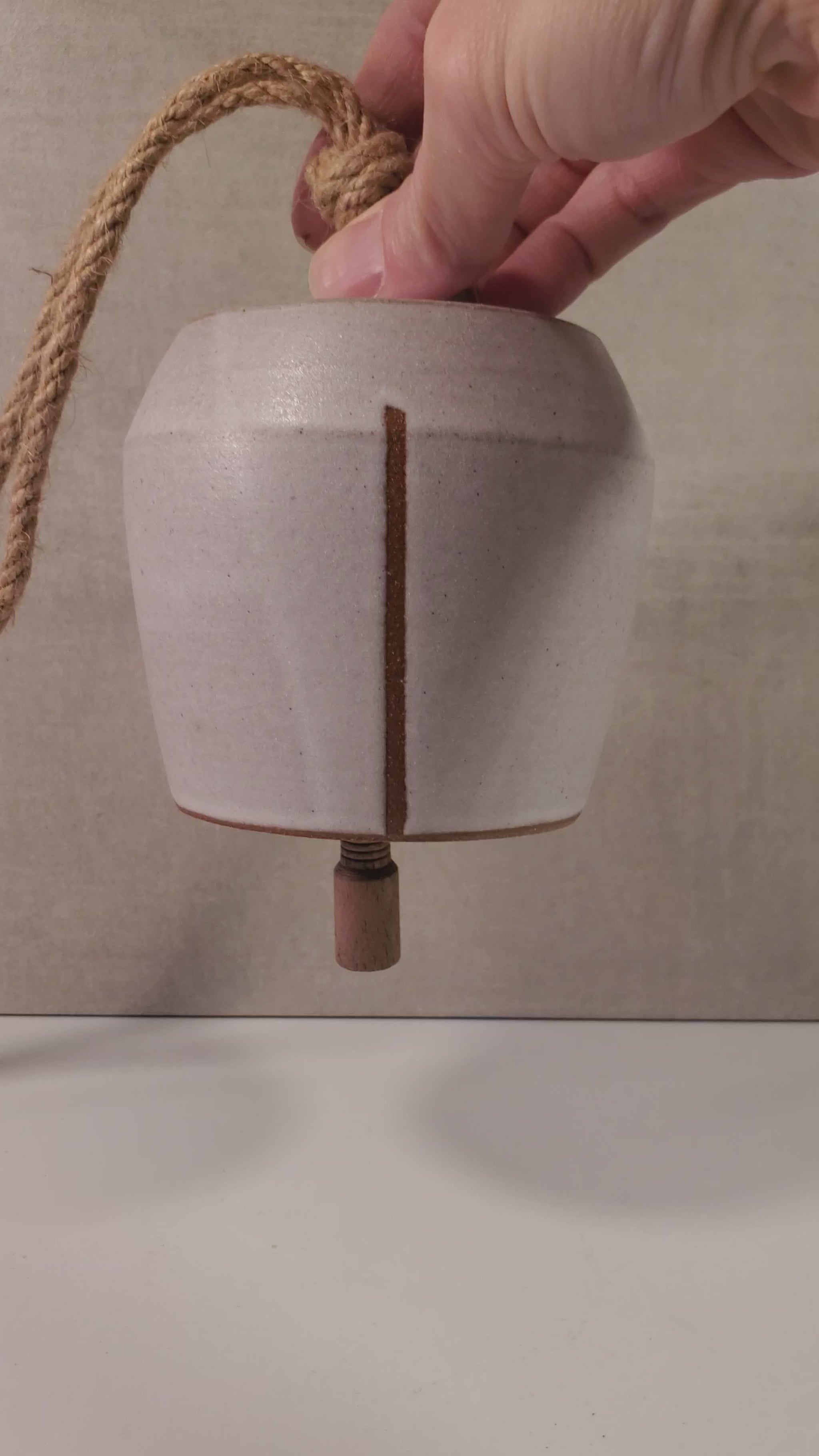 Hanging, Wheel Thrown Ceramic Bell - Nouvelle Collection (Matte White Stripe)