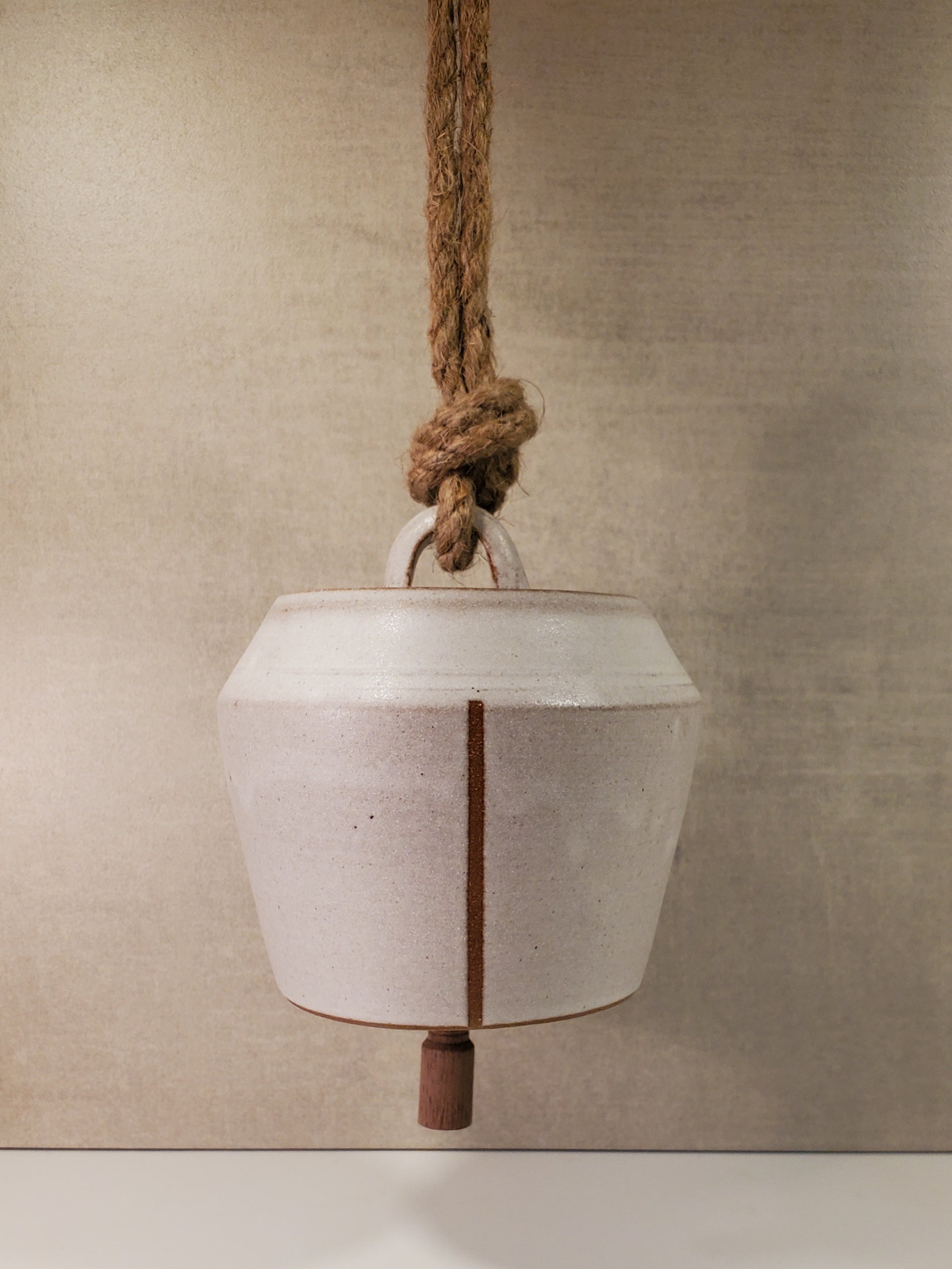 Hanging, Wheel Thrown Ceramic Bell - Nouvelle Collection (White Stripe)