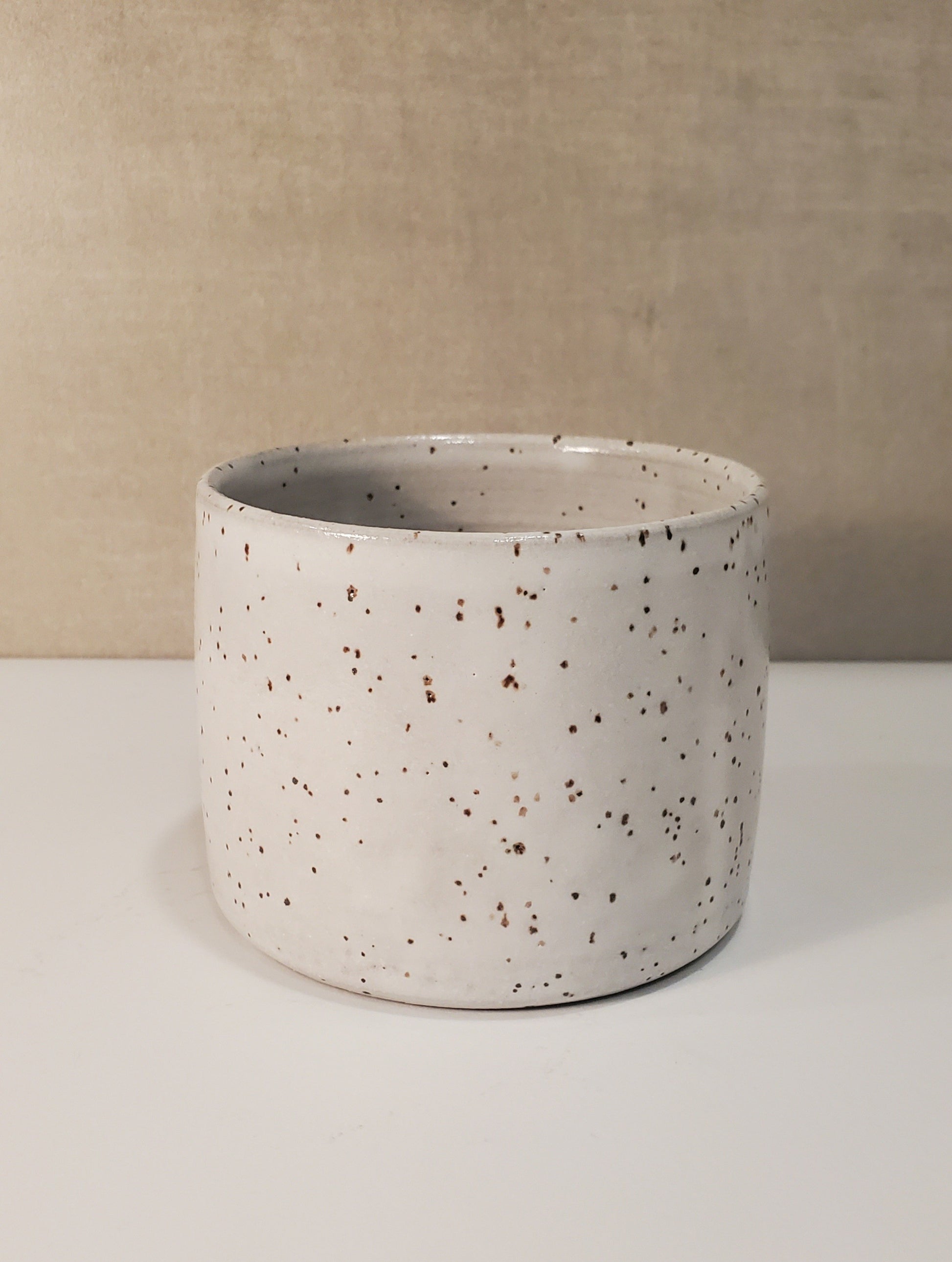 Form meets function in this handle-less mug. Squattier than my modern mugs, these are sized well for espresso based drinks. Perfect as a ceramic cortado cup, a modern cappuccino mug, or a no handle mug for a warm cup of espresso you can wrap your hands around. You'll appreciate the versatile size of this handmade, wheel-thrown ceramic cup. This would also make a great votive candle holder or pot for the smallest succulents.