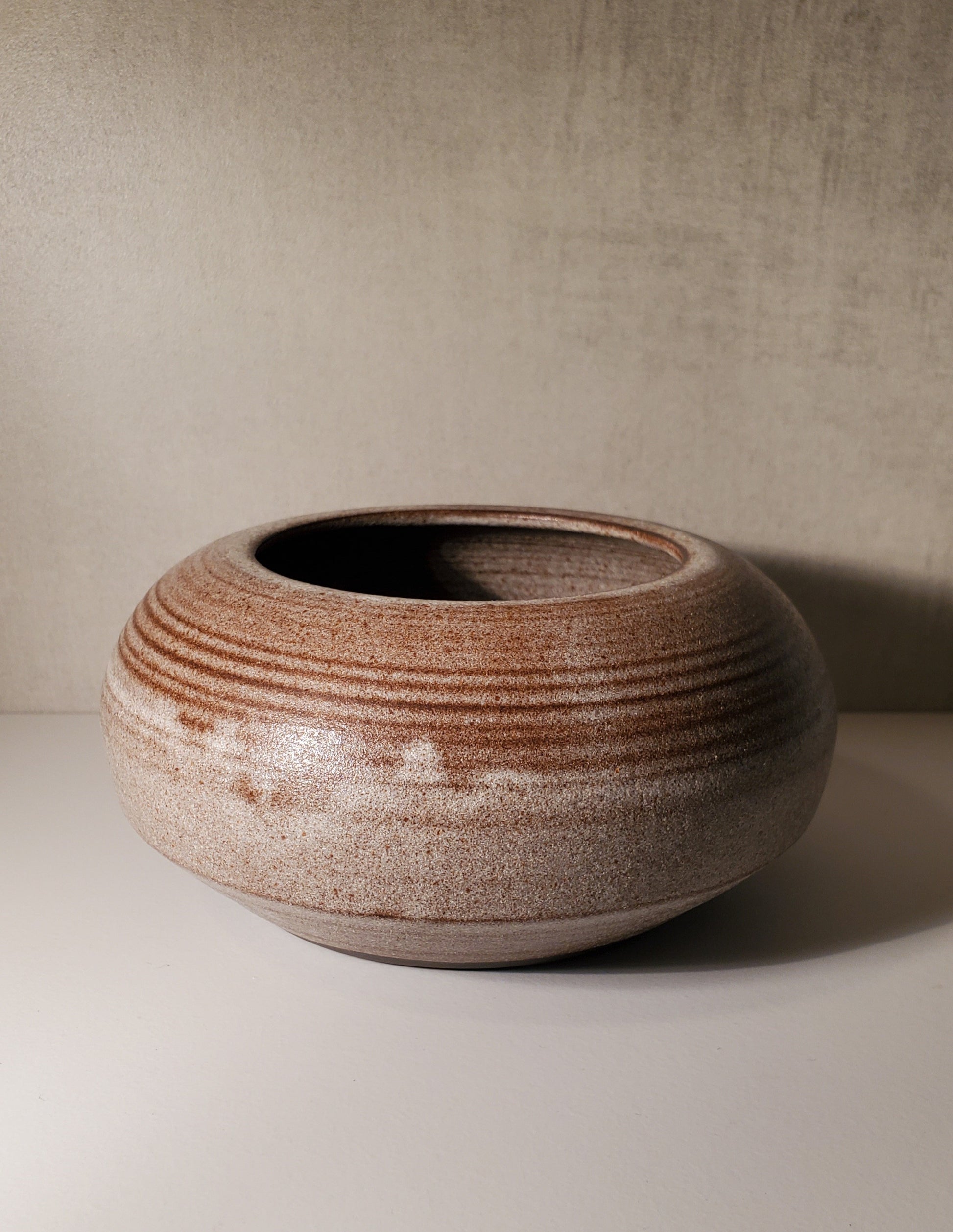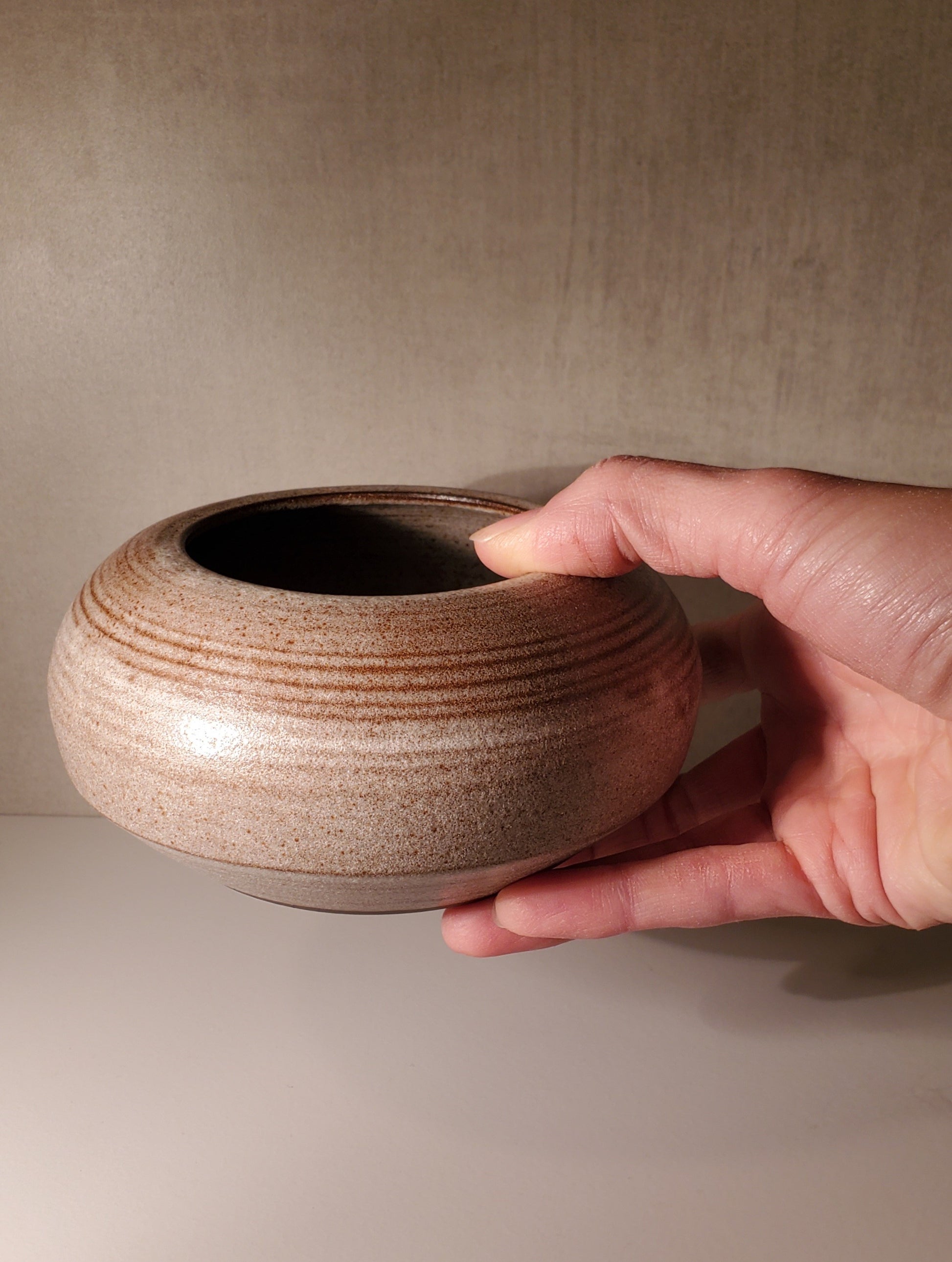 This wheel thrown, modern moon jar is beautiful on its own, or perfect for displaying small items (matchbooks, coins, etc.). Wheel thrown, and modern in form, this ceramic moon jar has a glazed interior, making it water tight.
