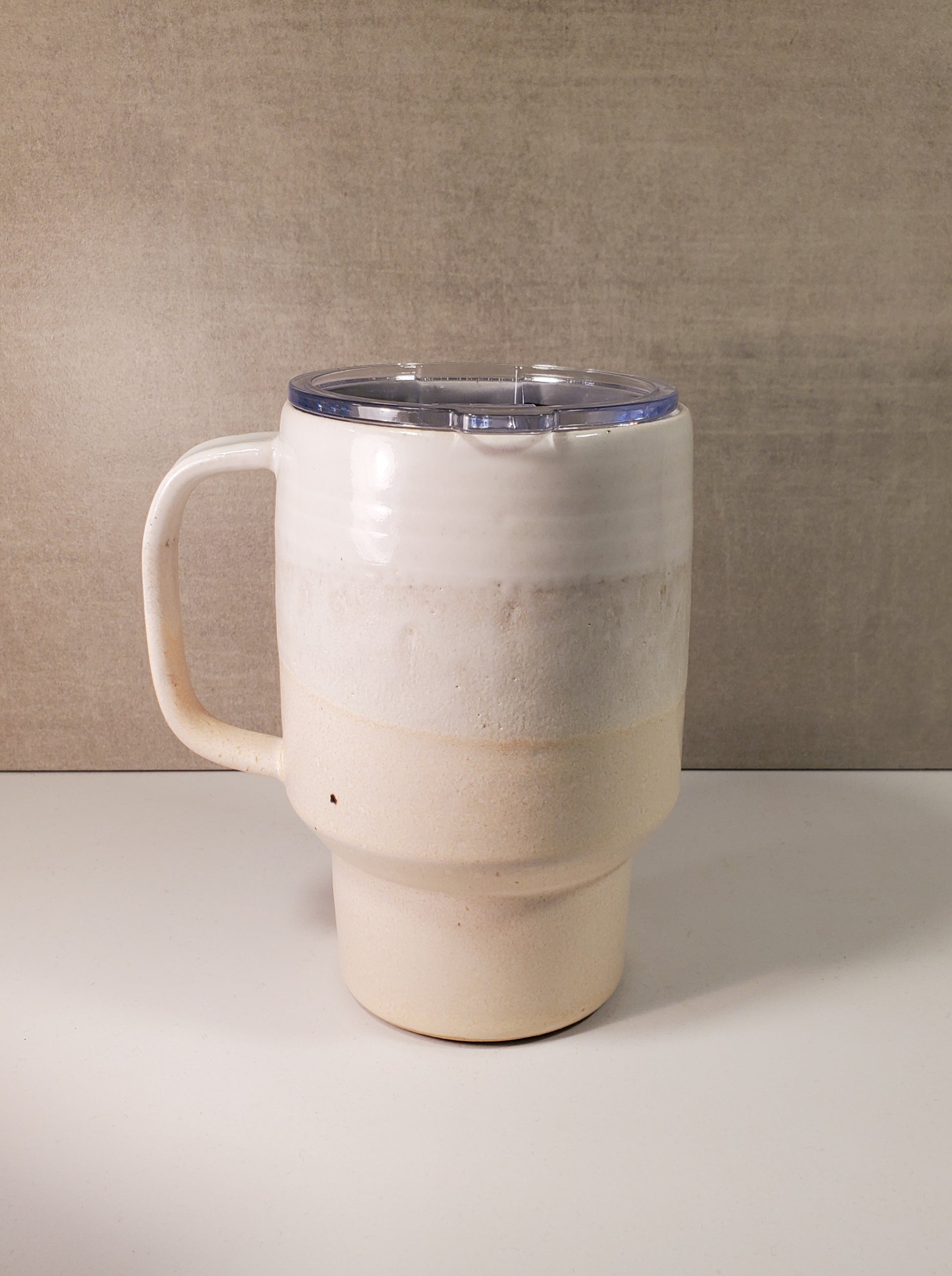 Take your favorite beverage TO GO in a lidded, handmade, wheel thrown ceramic travel mug! This is a handmade lidded ceramic travel mug - wheel thrown with a pulled handle made in Colorado.